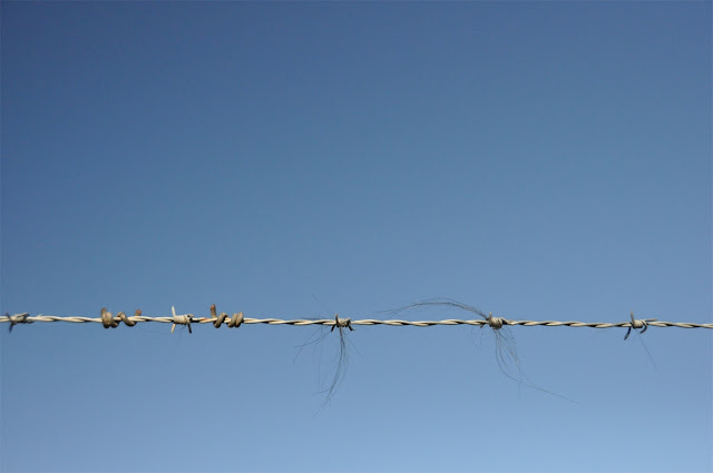 There was hair on the wire! Cow hair. Seemingly from when they rub against the barb for a scratch. Or when they lean through the fence, because we all know that the grass is always greener on the other side of the fence!